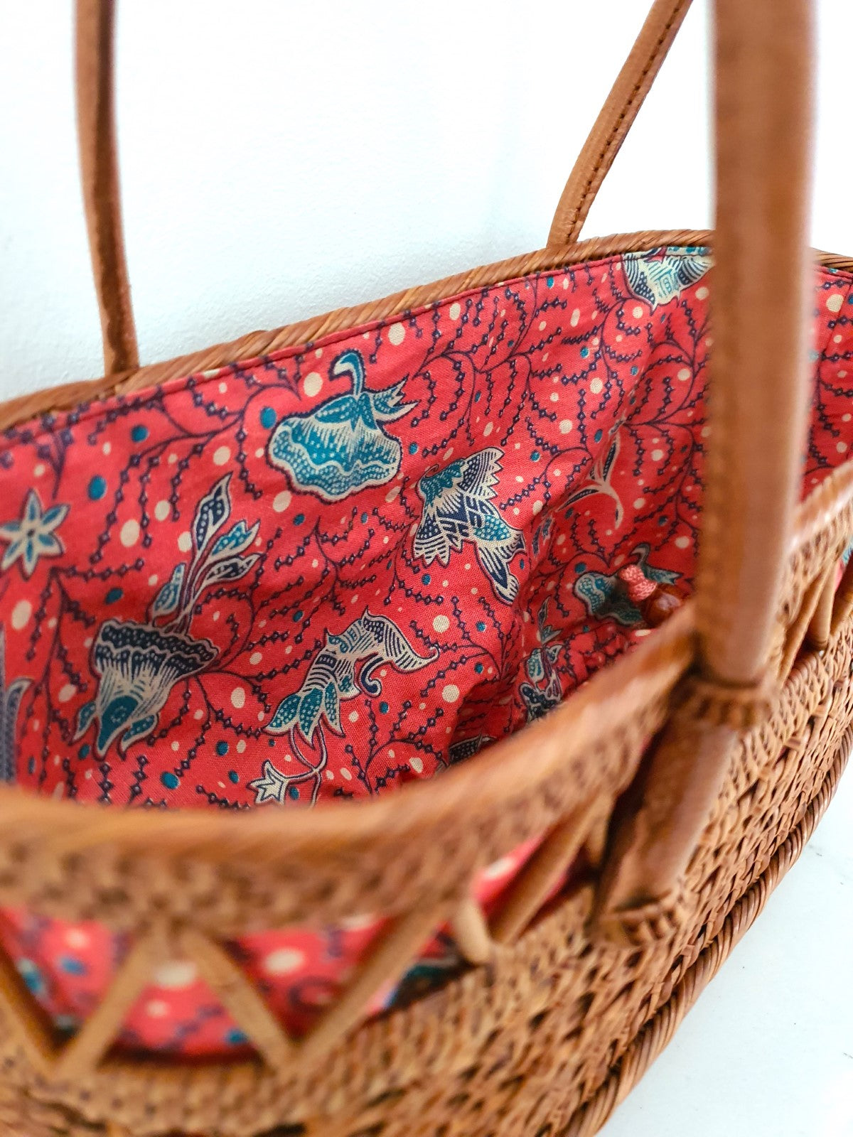 The bag lining is made of hand printed batik fabric and may vary from each bag.