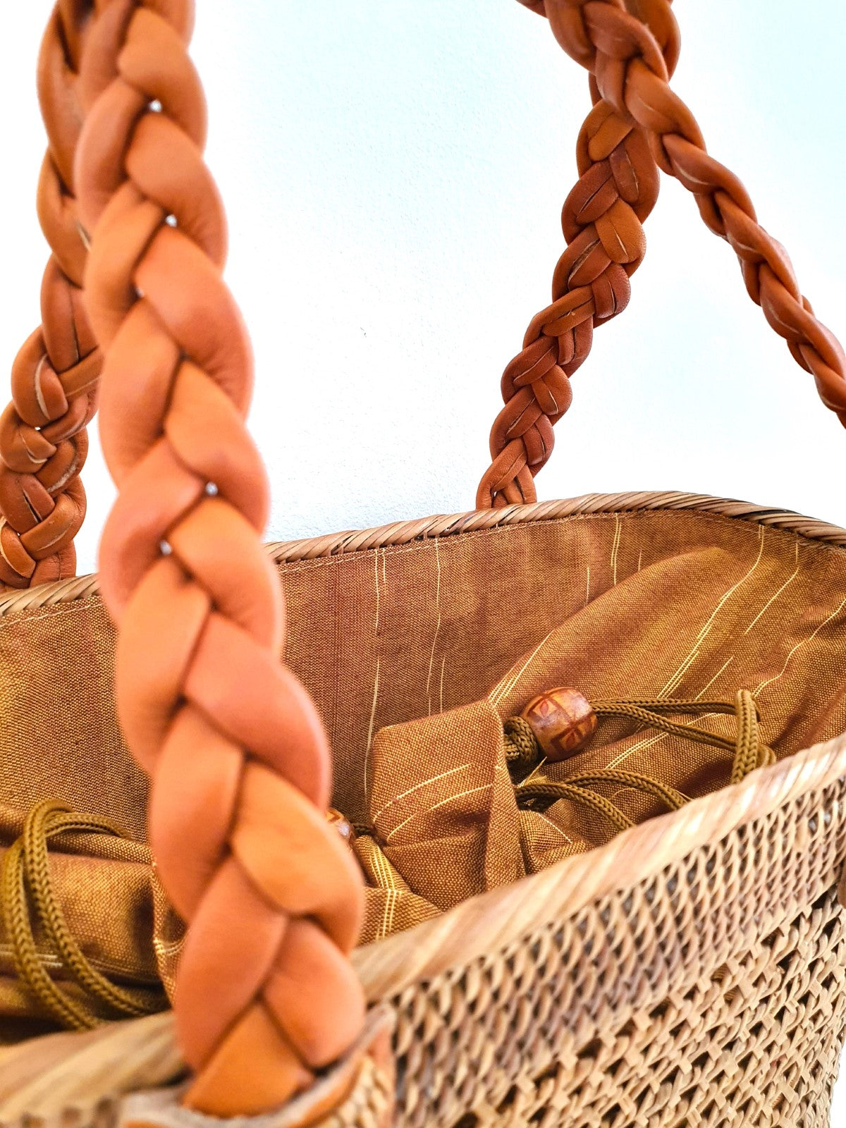 The bag lining is made of hand printed batik fabric and may vary from each bag.