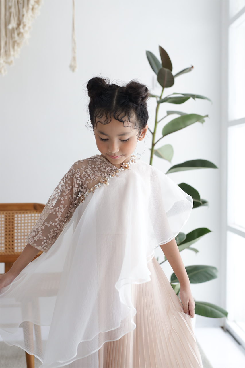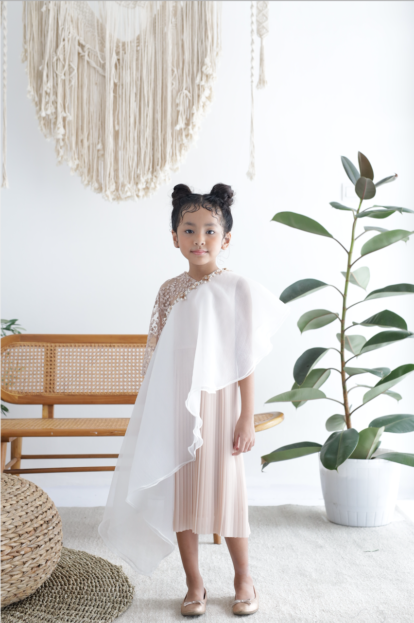 Zahra dress is made with beautiful lace, hand-sewn beads and best of all, we pleated our own dress to achieve an amazing structure.