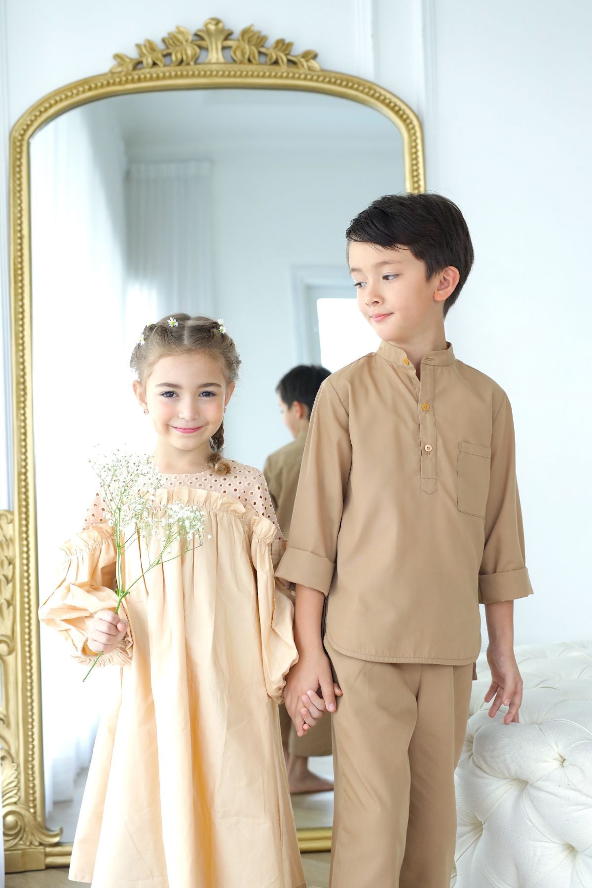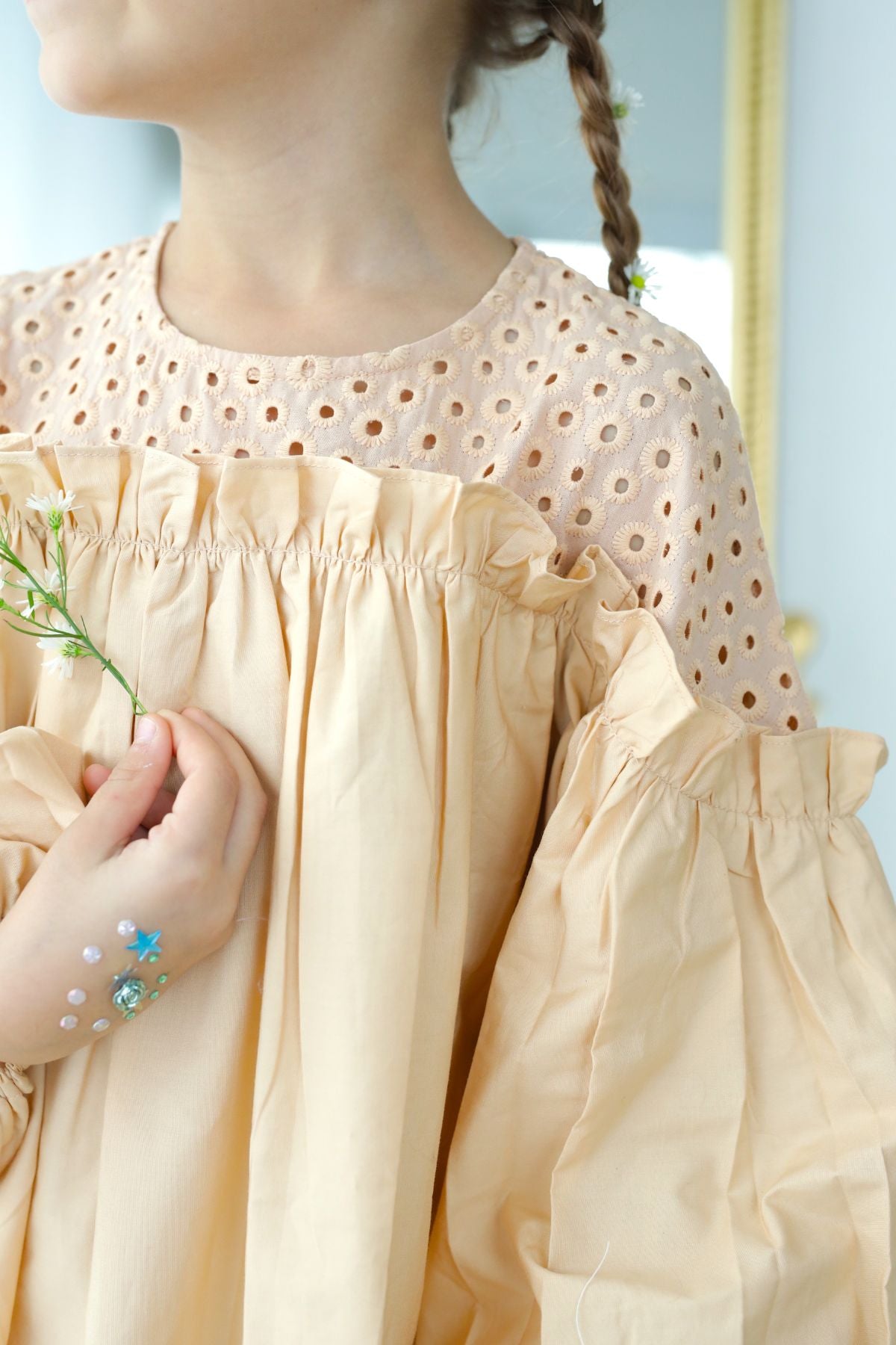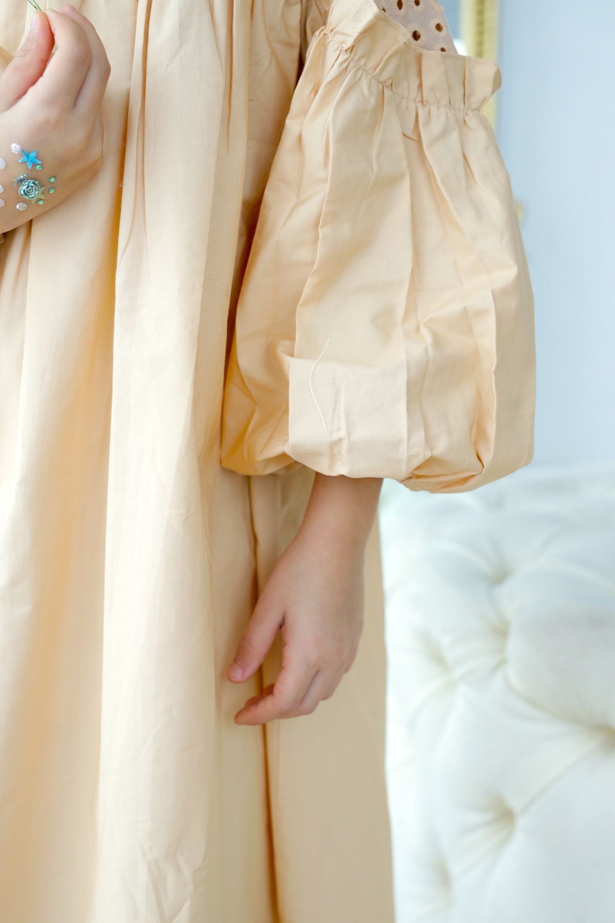 Walk with confidence in this soft beautiful flowy dress. In a midi length with easy pull-over style, plus beautiful details on top, it's a must for their daily wear.