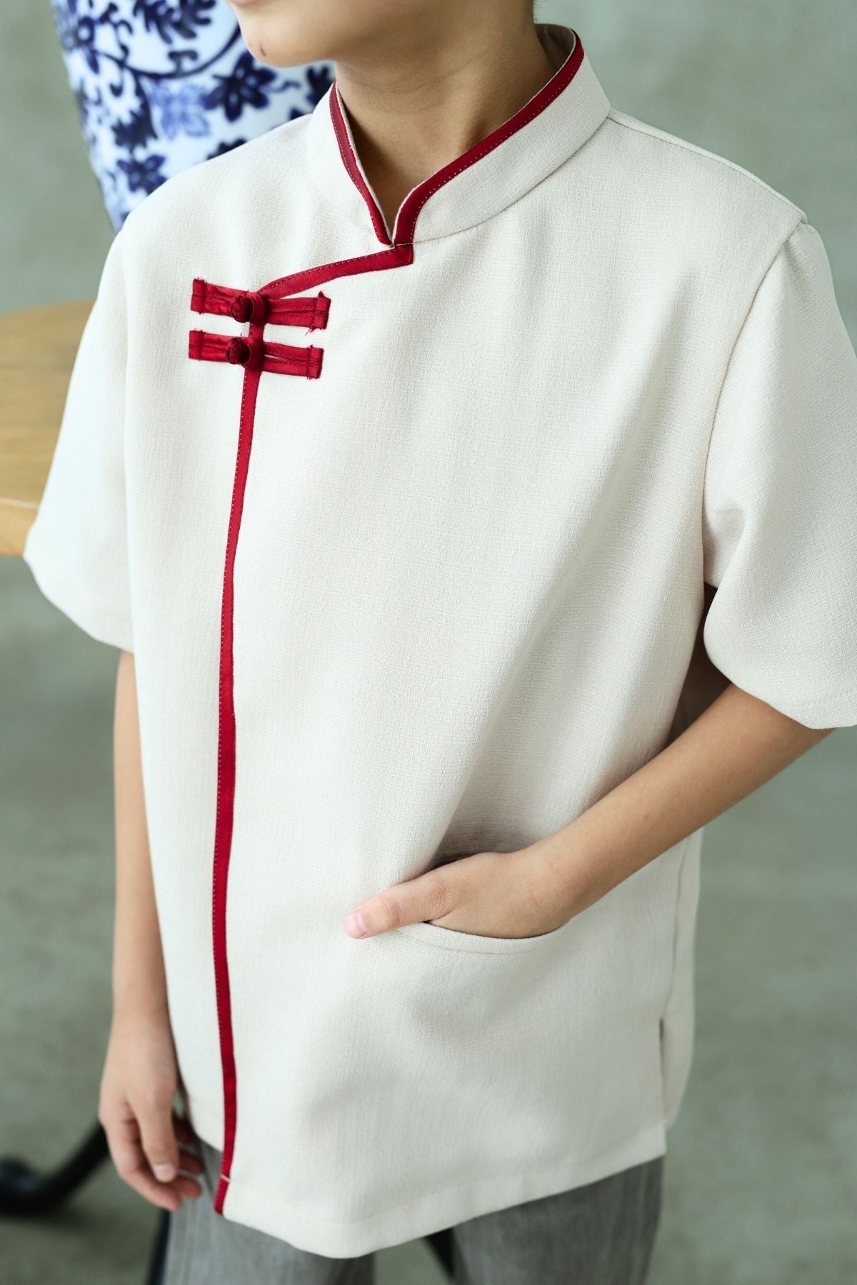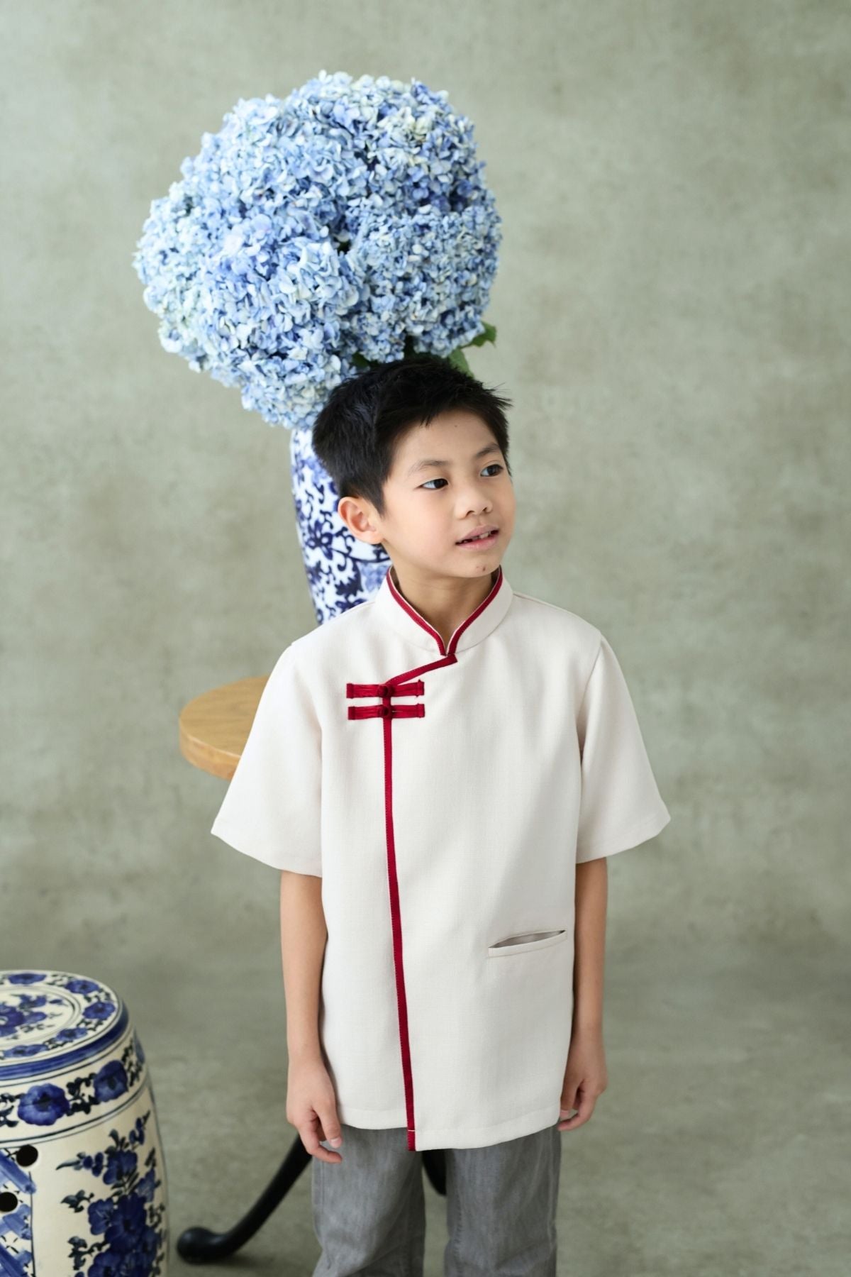 Crafted from premium fabric with a subtle sheen, the Yuan Boy top features refined traditional accents — from its mandarin collar to the minimalist knot detailing — all thoughtfully redesigned for today’s modern celebrations. Lightweight, comfortable, and effortlessly stylish, it pairs perfectly with both formal pants or casual bottoms.