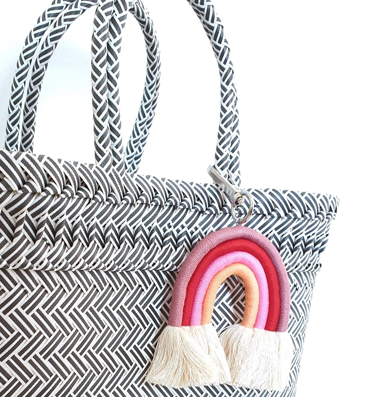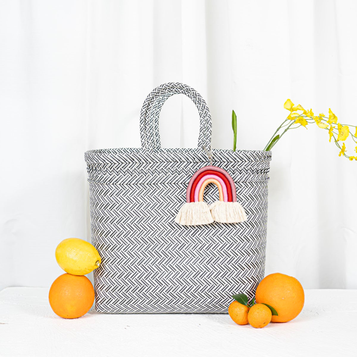 These bags are made of recycled plastic. Bag Charm is a macrame weaved by Dian who has turned her passion to business after losing her job due to covid.