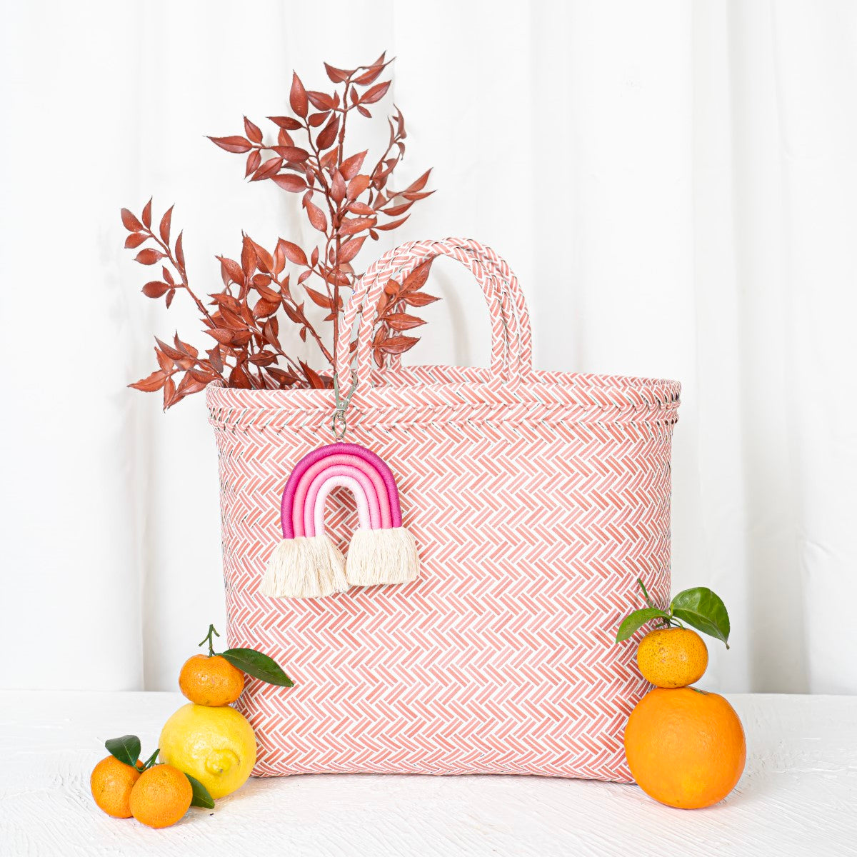 These bags are made of recycled plastic. Bag Charm is a macrame weaved by Dian who has turned her passion to business after losing her job due to covid.