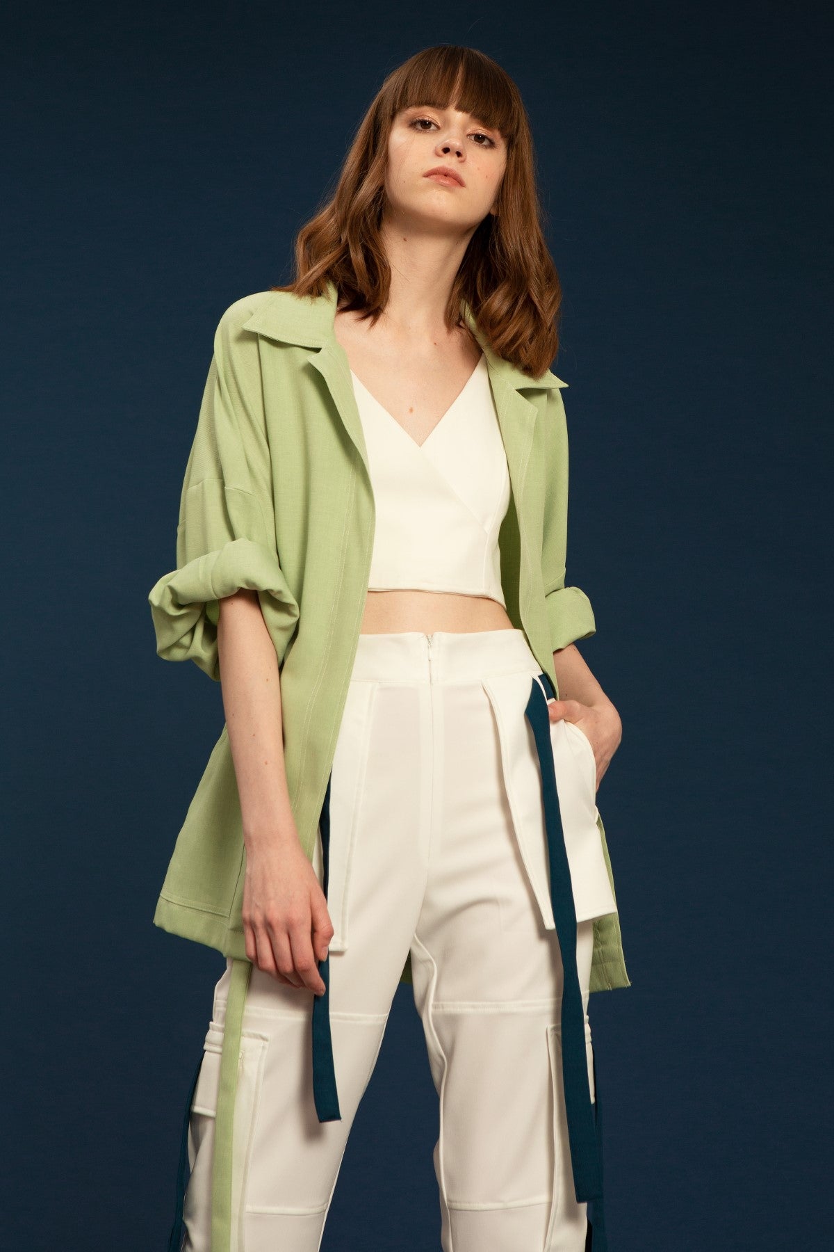 Timeless tailoring with a dash of fresh bright colours. Made from sustainably sourced cotton. This outer is an investment piece for any season. Material: Cotton Drill