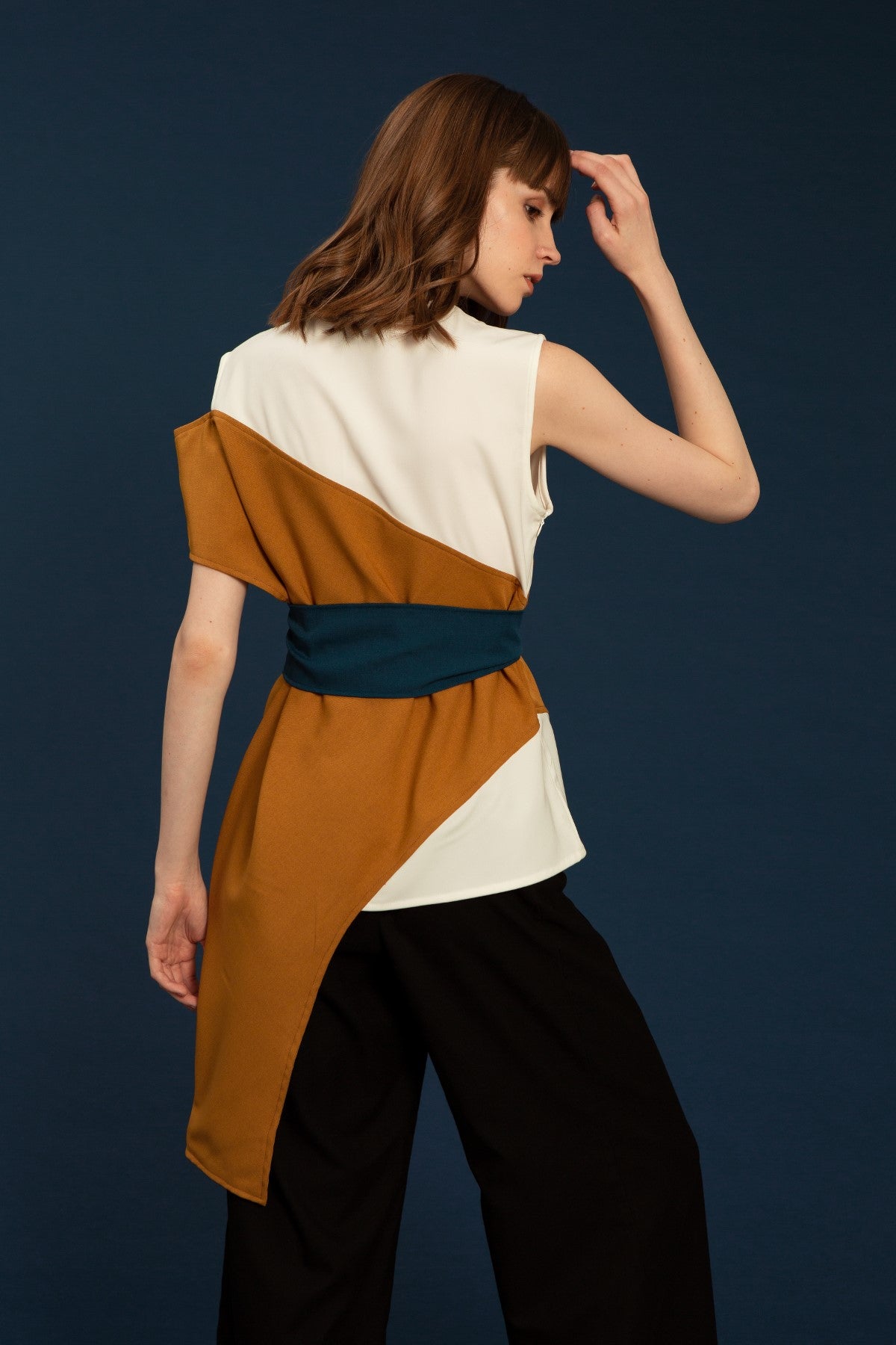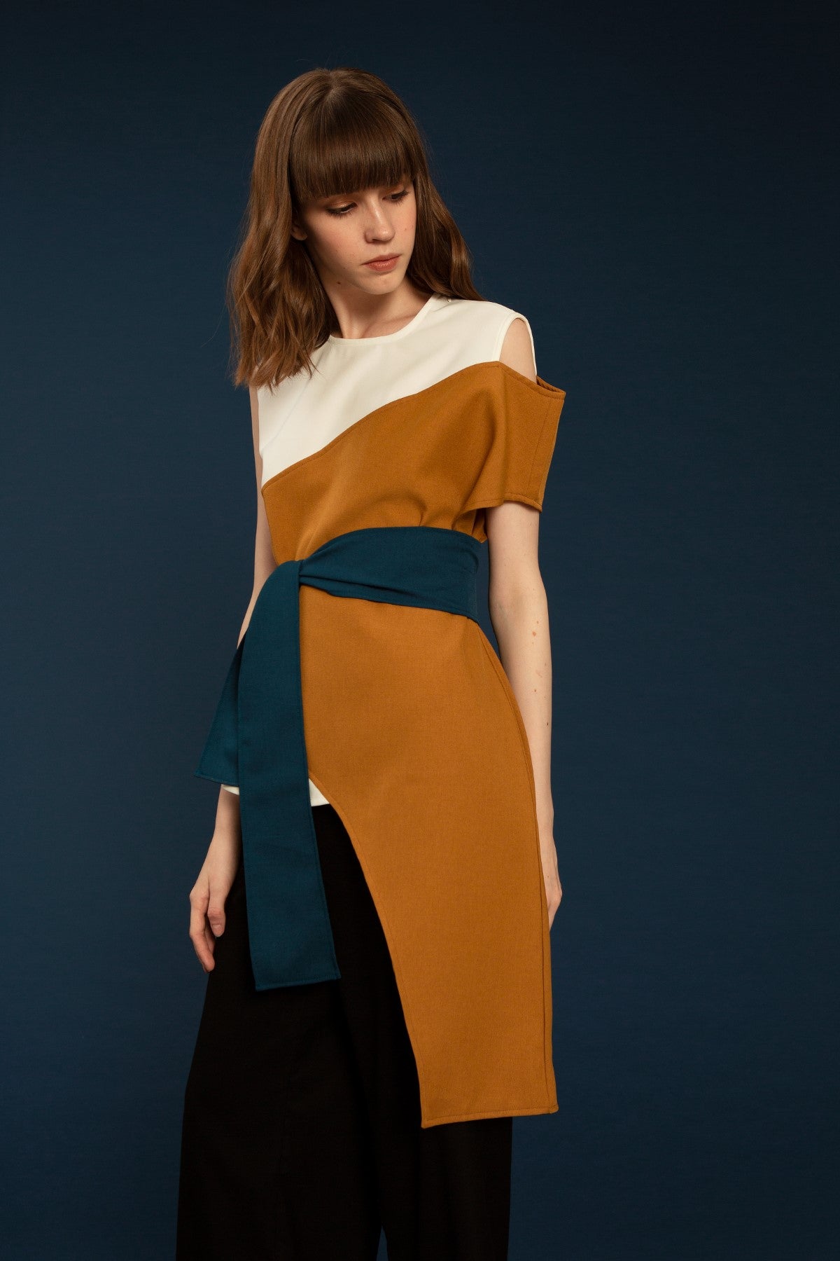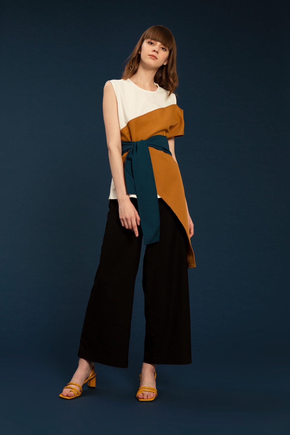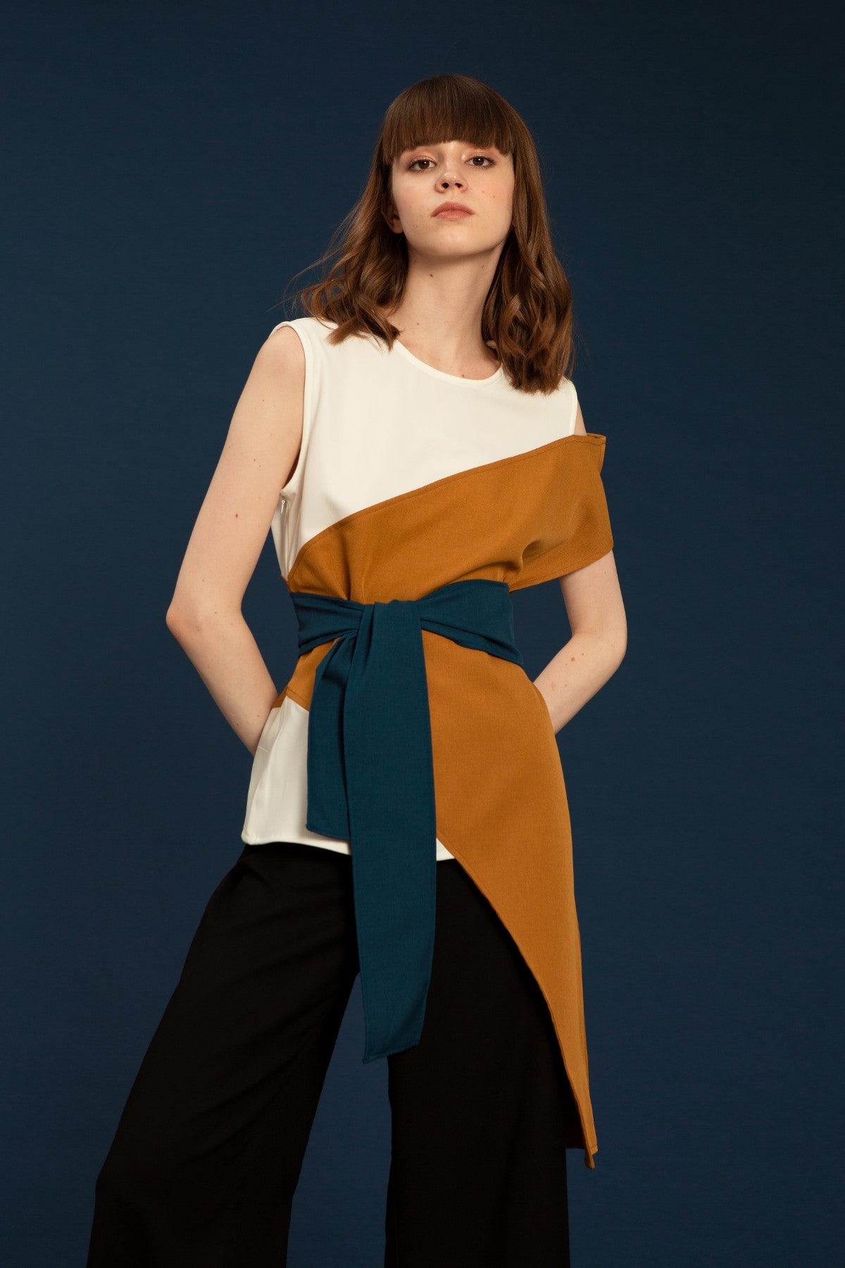 A beautiful combination of modern colours top with a touch of drop shoulder and waist ribbon. Material: Cotton Drill